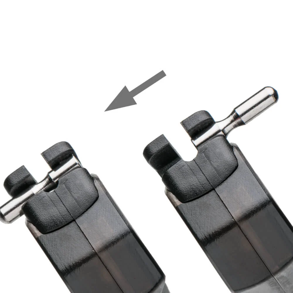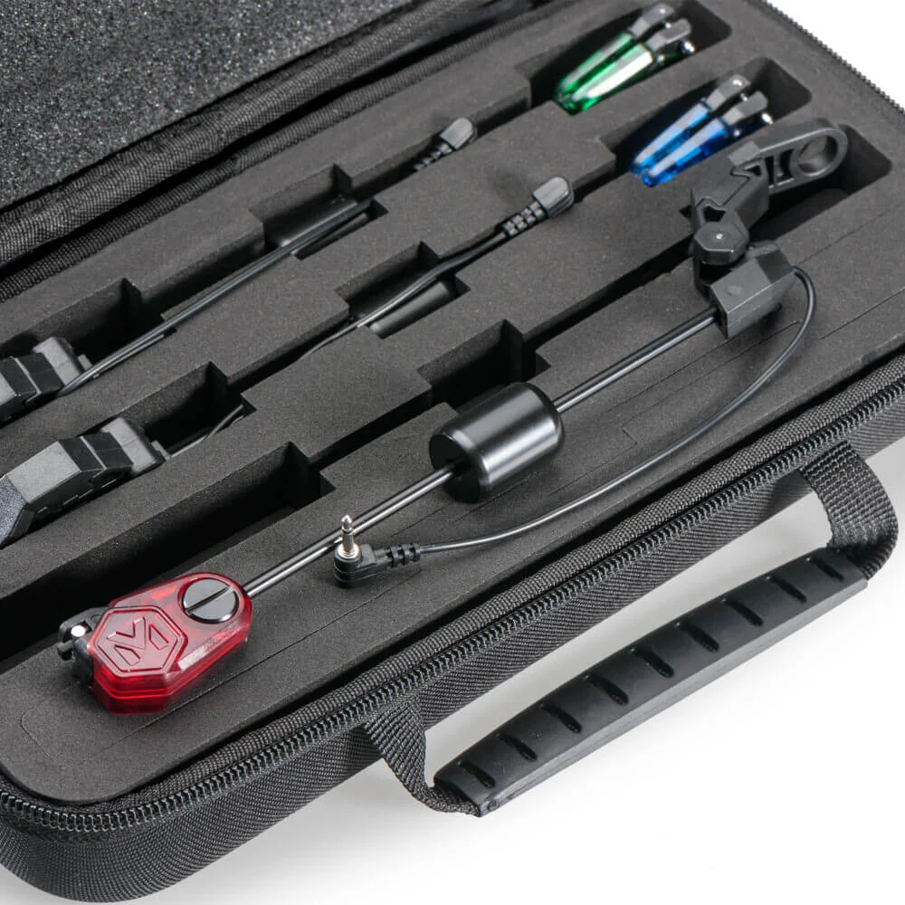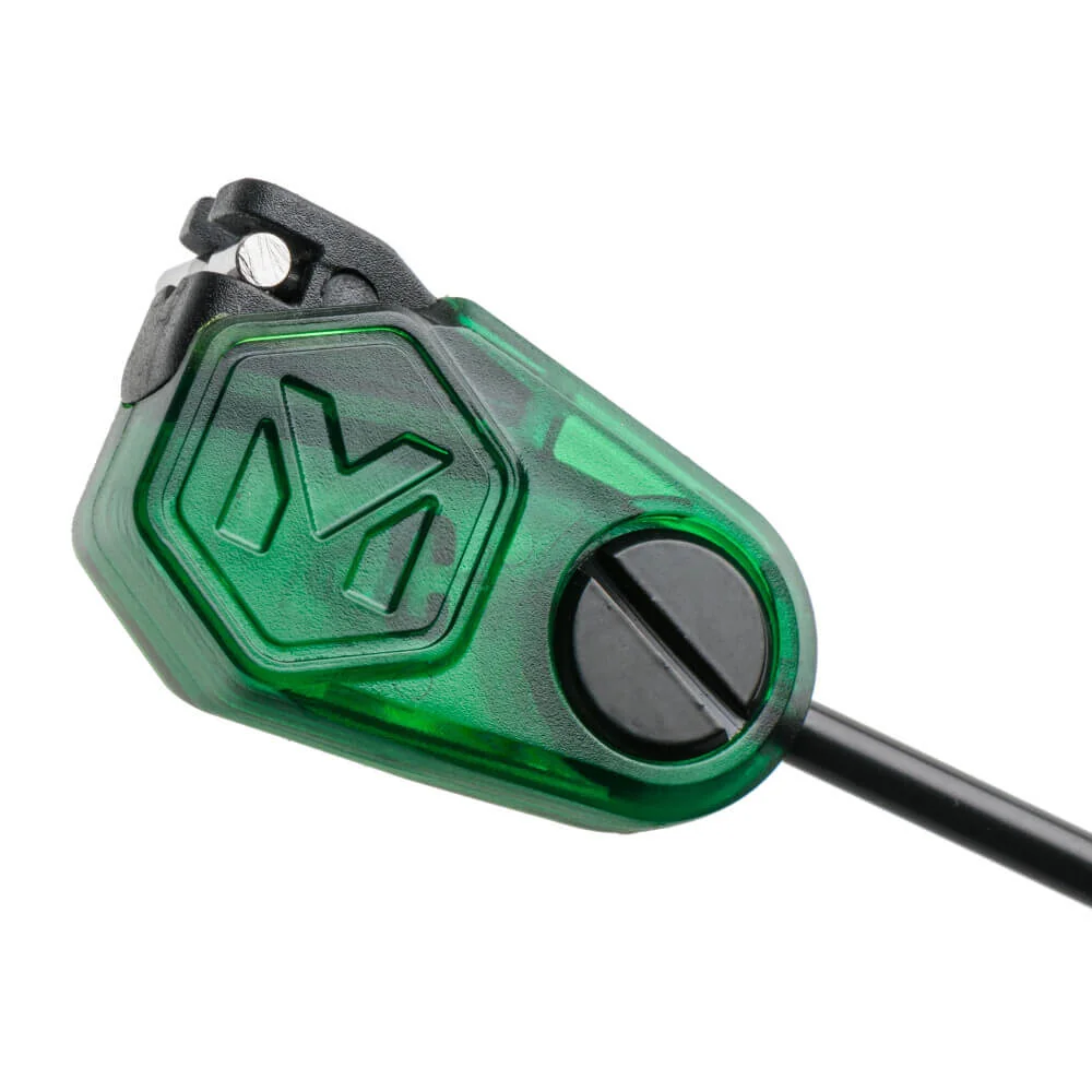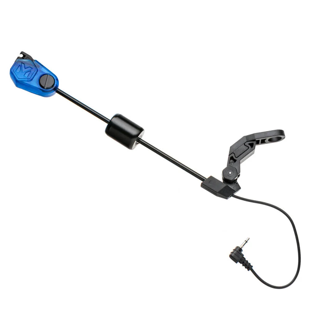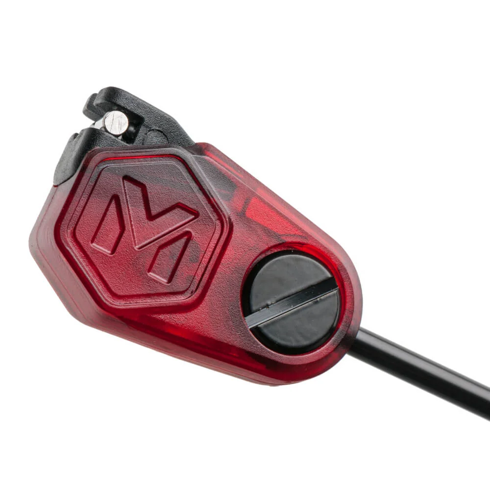 Beleuchteter Swing Arm dessen Design von uns gestaltet wurde. Die Stromversorgung erfolgt direkt über die Bissanzeiger. Sein kristallklarer Körper leuchtet bei einem Biss auf. Der sehr leichte Kopf des Indikators kann bei Bedarf durch ein verschiebbares Gewicht deutlich beschwert werden. Ein zuverlässiger Clip hält die Schnur oder das Geflecht unabhängig von Durchmesser und Gewicht sicher am Kopf des Swing Arms. Gewährleistet ist jedoch die zuverlässige Freigabe der Schnur wenn die Rute bei einem Biss aufgenommen wird und der Swing Arm in der unteren Position festgehalten, wodurch ein Auftreffen auf einen Bankstick oder ein weiteres unwillkürliches Schwingen des Swing Arms verhindert wird.